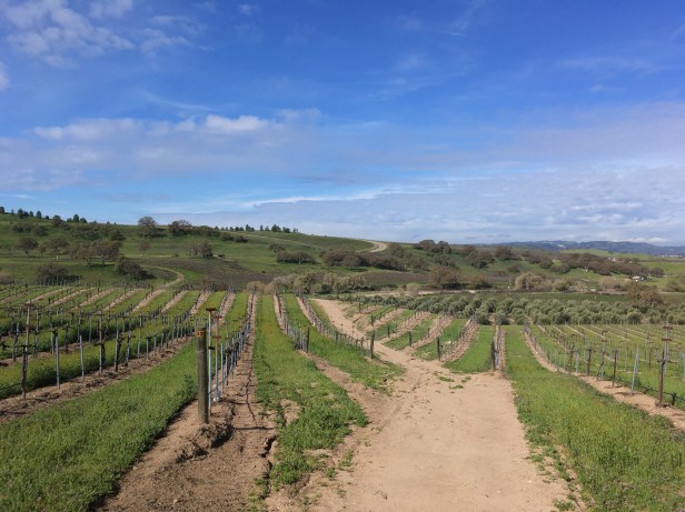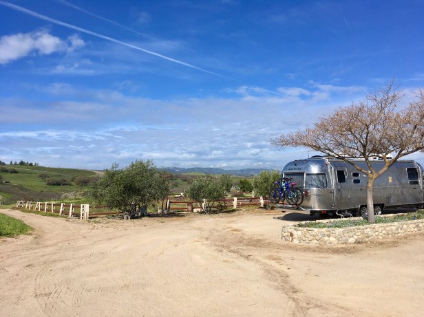 We left our family in Bakersfield and headed northwest towards the town of Paso Robles which is surrounded by many vineyards that produce good wines touted to rival some of those produced in Napa Valley. We stopped at a small family owned vineyard, called Rio Seco, which consisted of 63 acres of lush green rolling hills that was once owned by a Hollywood movie producer. The tasting room and winery were housed in a big red barn which was originally constructed to accommodate food catering for actors on the set of a long forgotten 1984 movie. This winery was also a Harvest Host network member so owner, Carol Hinkle, allowed us to park there overnight after tasting some of her delicious wines. We purchased a nice bottle of red and walked around the scenic grounds of the vineyard while waiting on an awesome sunset. Here are some pics of our stop at wonderful Rio Seco winery…